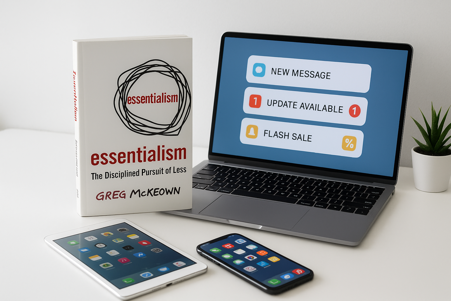 Notifications are one of the biggest sources of distraction. Essentialism advocates turning off non-critical alerts. Limit notifications to important emails, calendar reminders, or urgent communication channels.